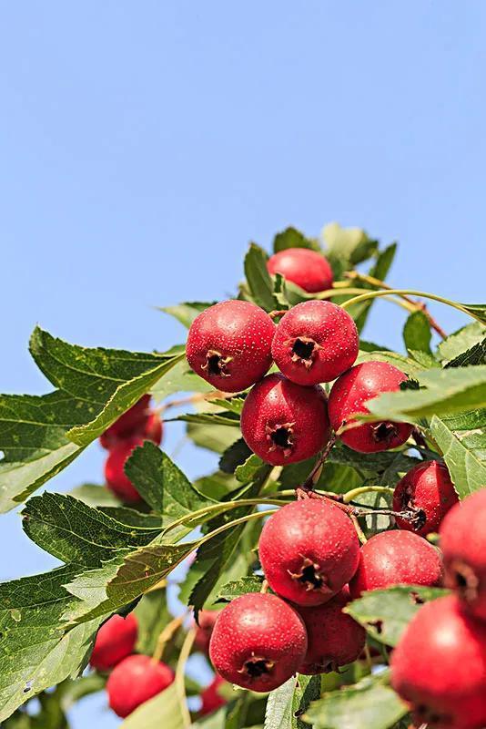 山楂别名红果,属落叶乔木。花白色,果实近球形,红色,味酸甜,为秋冬两季供应时间较长的一种水果。我国河北、北京、辽宁、河南、山东、山西、江苏、云南、广西等地都有栽培。山楂种类主要有山楂、大山楂、猴山楂、野山楂、山东山楂和云南山楂等六种,其中以大山楂栽培为最多。