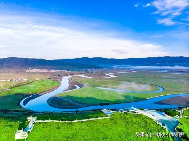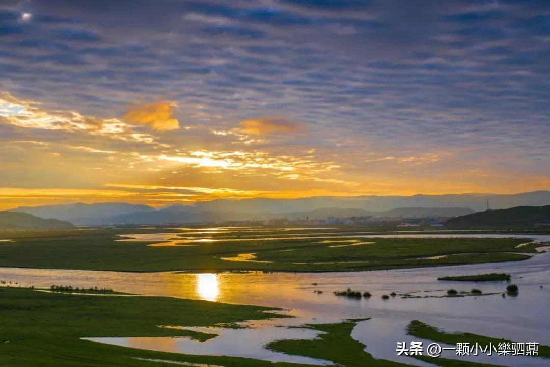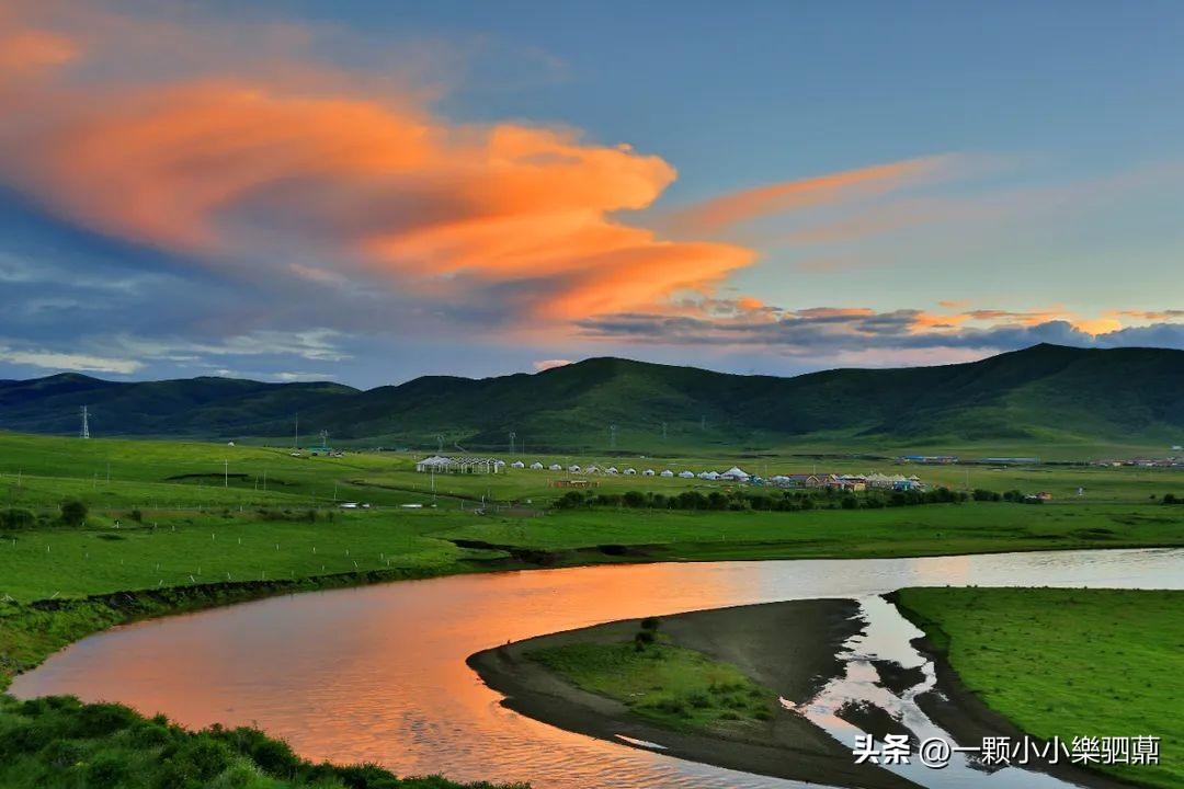 夕阳下的月亮湾,金光点点,白河在这里百转迂回,酷似一轮新月,向您娓娓诉说山麓与嘎曲哀婉凄美的爱情故事,草原风光的壮丽尽汇于此。
