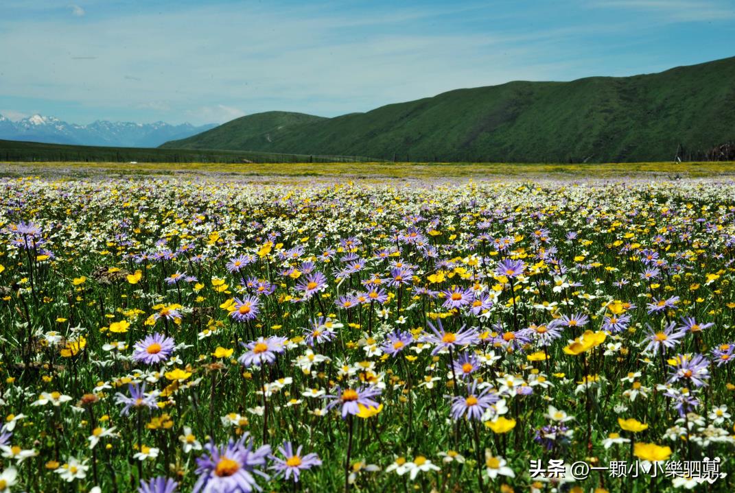 红原大草原的俄木塘花海,是川西藏地知名的草原花海,海拔3700米左右。从每年6月开始,方圆数十平方公里的俄木塘草原,一片鲜花的海洋、一路芬芳的天堂,堪称“高原桃源”,宛若人间仙境。湛蓝的天空、高耸的雪峰、辽阔的草原、斑斓的花海交相辉映,融为一体,让人心驰神往,流连忘返。