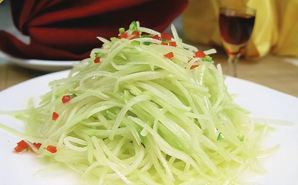 1.土豆和胡萝卜分别切丝,下锅焯水,出锅过凉水。