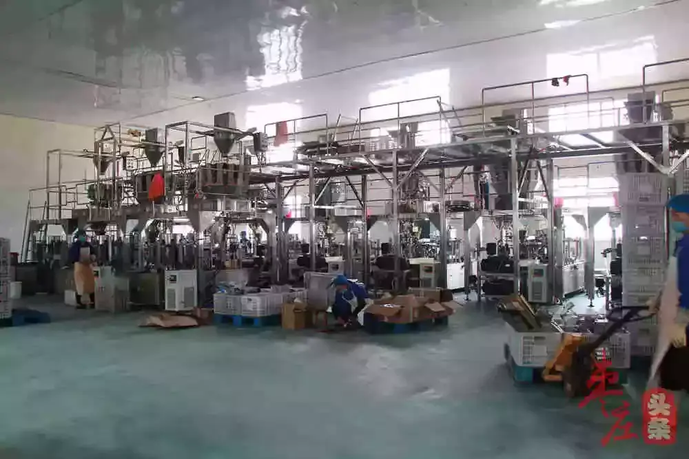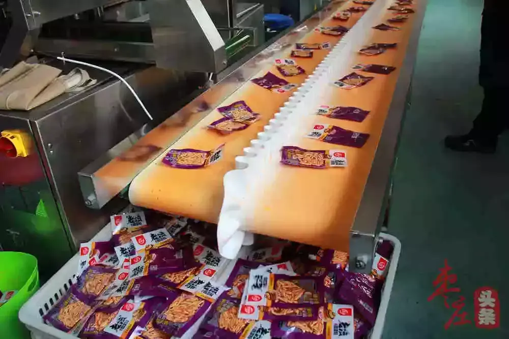 改革后的豆制品厂是什么样的?近日,枣庄日报全媒体记者走进山亭区城头镇几家豆制品厂。一台台包装机器,从手喂原料到封口包装,再到传输带运到塑料筐,仅仅几秒钟就完成了一整套流程。令人吃惊的是,还有一座上下两层的大型机器,不到十人操作,不一会儿,一袋袋精包装豆干成型;随后,几名工人推车至装箱处,由装箱工人装箱,运至仓库;紧接着是一辆辆大货车运输产品。