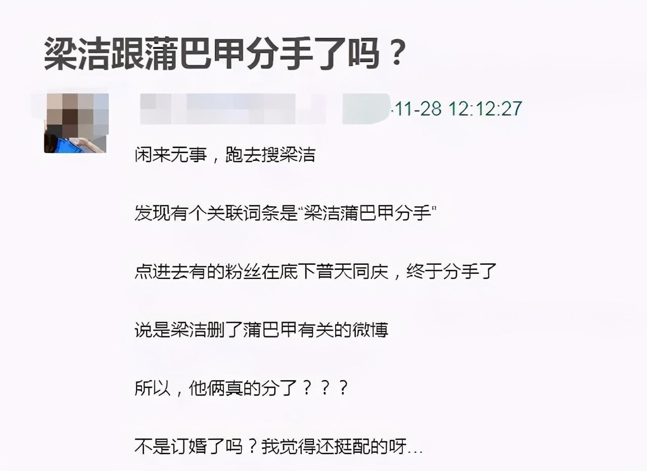 蒲巴甲梁洁官宣分手!2年前就已订婚,男方曾被曝是渣男包养小三
