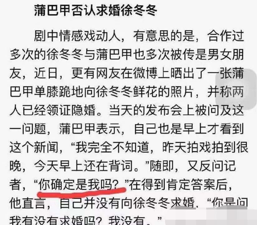 让人不解的是,在之后的采访中,蒲巴甲却翻脸不认求婚一事,甚至还甩锅、反问记者:“你确定是我吗?”