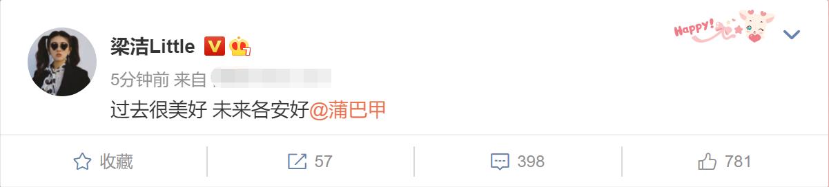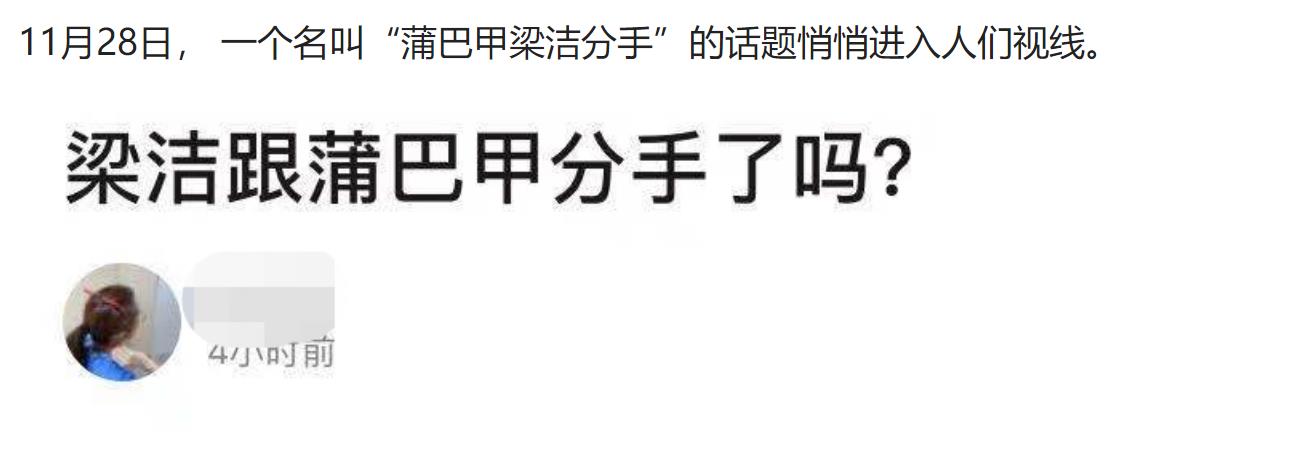 #蒲巴甲梁洁分手#、#蒲巴甲梁洁官宣分手#、#蒲巴甲梁洁宣布分手#