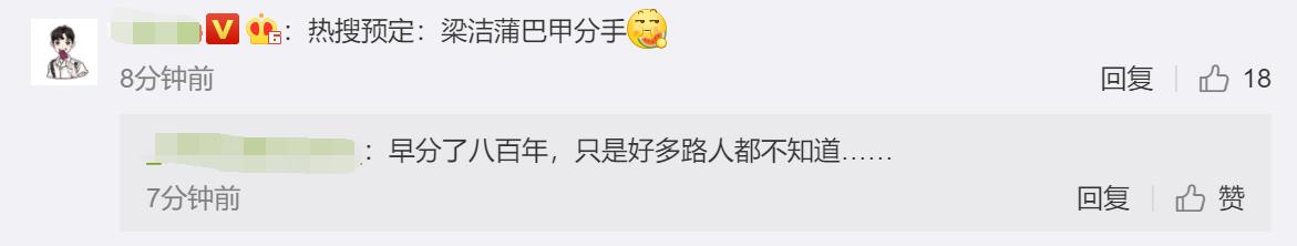 在分手博的评论区里,网友也称,“早分了八百年了,只是好多人不知道而已”。