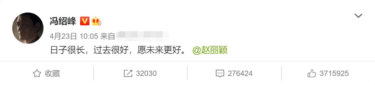 这和平分手的氛围与文字,让人不禁联想起前不久官宣离婚的冯绍峰与赵丽颖。