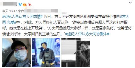 6月8日,娱乐圈里的迷幻故事又现身,周国贤和谢安琪在直播中爆料,好友方大同坠入爱河,虽然不知道女方身份,但可以确认的是一个可爱的女孩。正当所有粉丝都开始祝福时,方大同经纪人6月8日午后透过媒体予以否认,表示谢安琪已经与旗下艺人沟通,当时说法只是个玩笑。