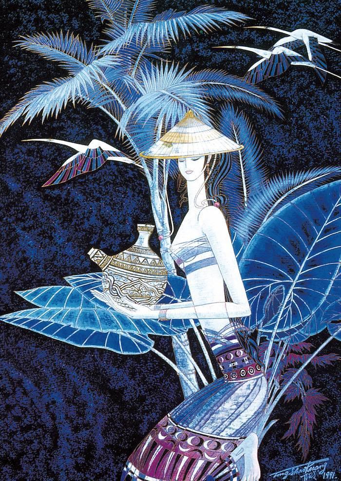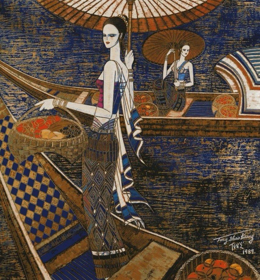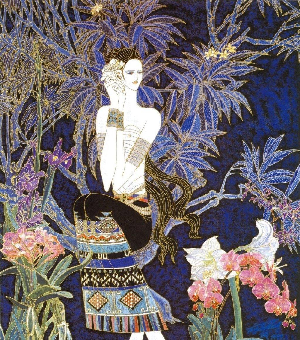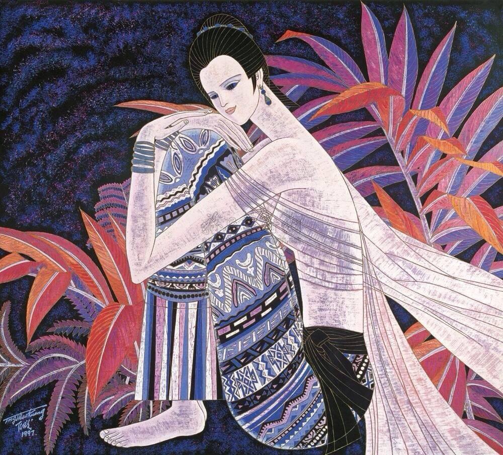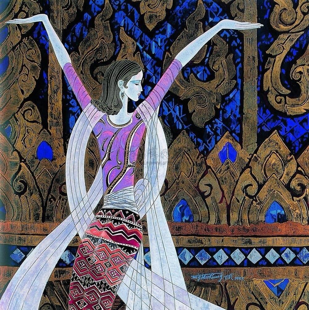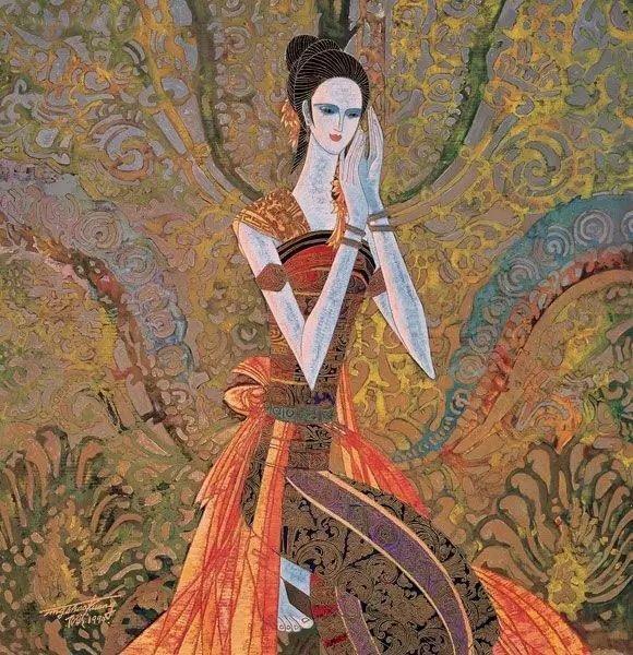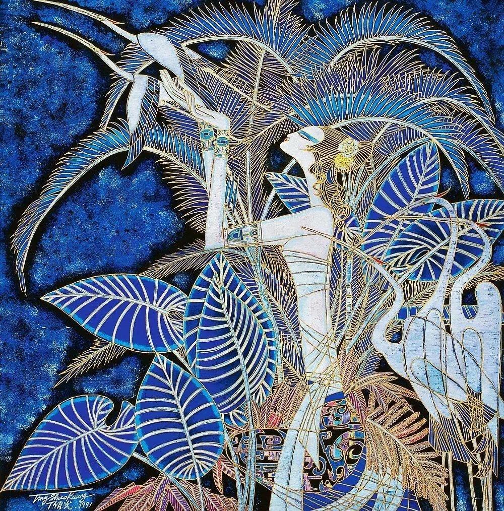 欣赏丁绍光先生的画作,确实使人感受到他在色彩方面的努力极为深厚,融合东西方和古今色彩为一炉,华丽繁复,达到了感人的境地,不愧人称他是当今世界的色彩大师。