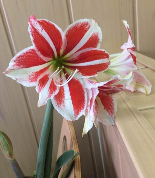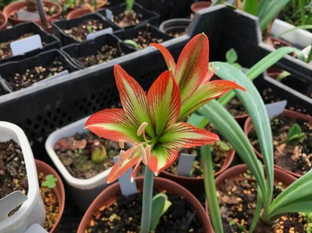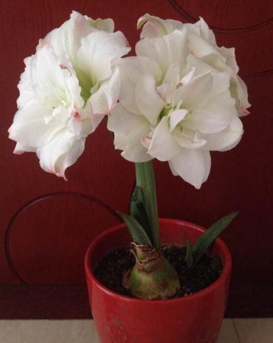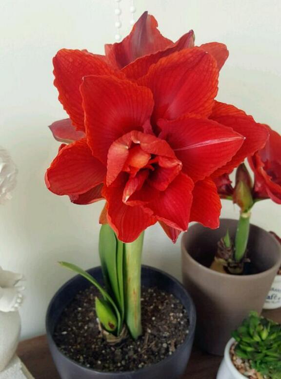 圣诞快乐是朱顶红所有的品种中开得最热烈的,最抓人眼球的,花瓣背面是酒红色,内部是鲜红色,不管是植株还是花朵都非常具有观赏性。