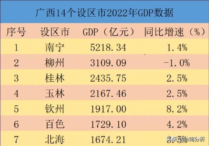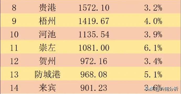 广西各市的GDP排行榜,防城港超越了来宾,崇左成功突破千亿