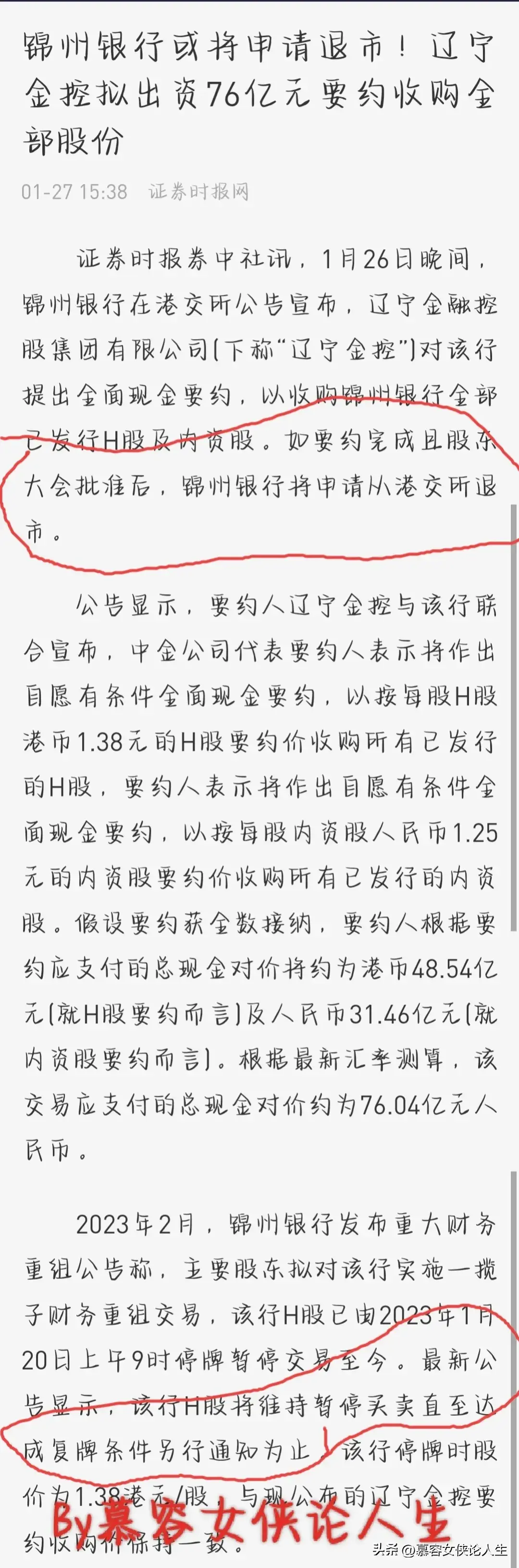 #锦州银行将申请港交所退市##锦州银行复牌计划尚待确定##辽宁金控拟全面要约收购锦州银行##锦州银行又一笔大额股权即将拍卖##锦州银行怎么样##锦州银行的大股东为什么要对其进行财务重组?#