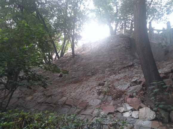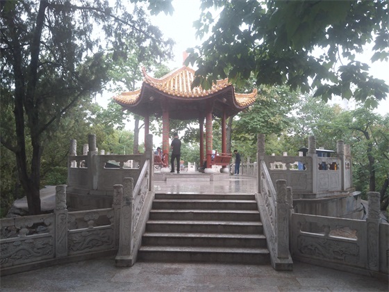 紫荆山又系 商代古城遗址 的一部分,距今3600多年, 几千年来由于风沙堆和洪水冲淹,已将大部分城墙埋入地下,现在紫荆山和公园南山两处露出地表约一千公尺长,据清康熙《郑州志》中记载,紫荆山乃北城门外崇圣寺后旧城古址,久积沙渐高而高。是国务院1961年公布的第一批重点文物保护单位,为缅怀子产,在山顶建一亭名曰惠爱亭,并有石刻一处,介绍紫荆山的由来。山体遍植紫荆树,亭周为观景台,站在台上,纵观山体风景,美不可言。
