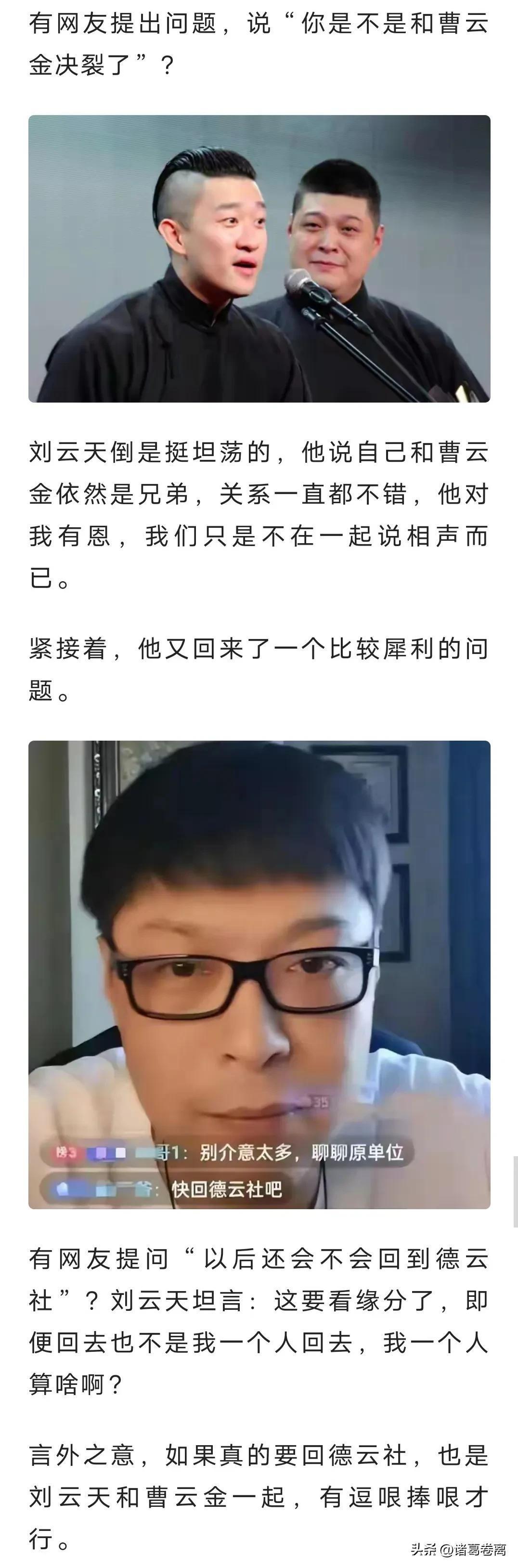 他首先回答了和曹云金如今的关系,然后又聊到回不回德云社的问题。