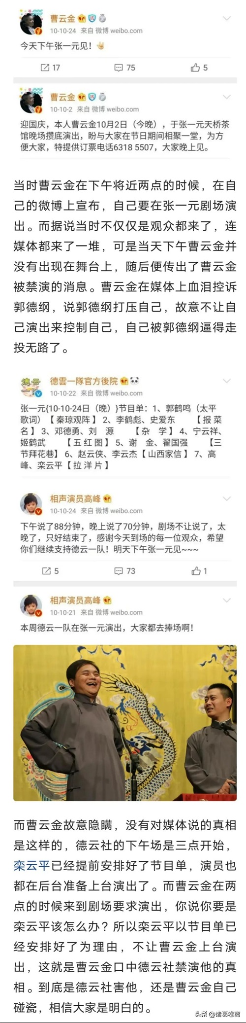 当年还有一点是,在德云社受排挤。很委屈,负责安排演出的不给他们安排演出。