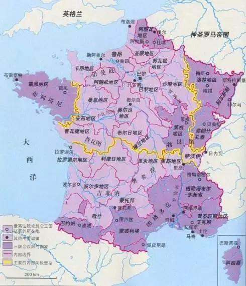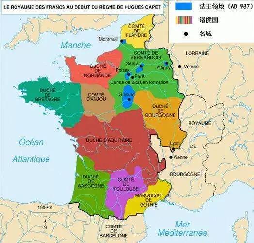 843年签署的《凡尔登条约》,查理曼帝国一分为三,其中西法兰克王国演变为现在的法国。