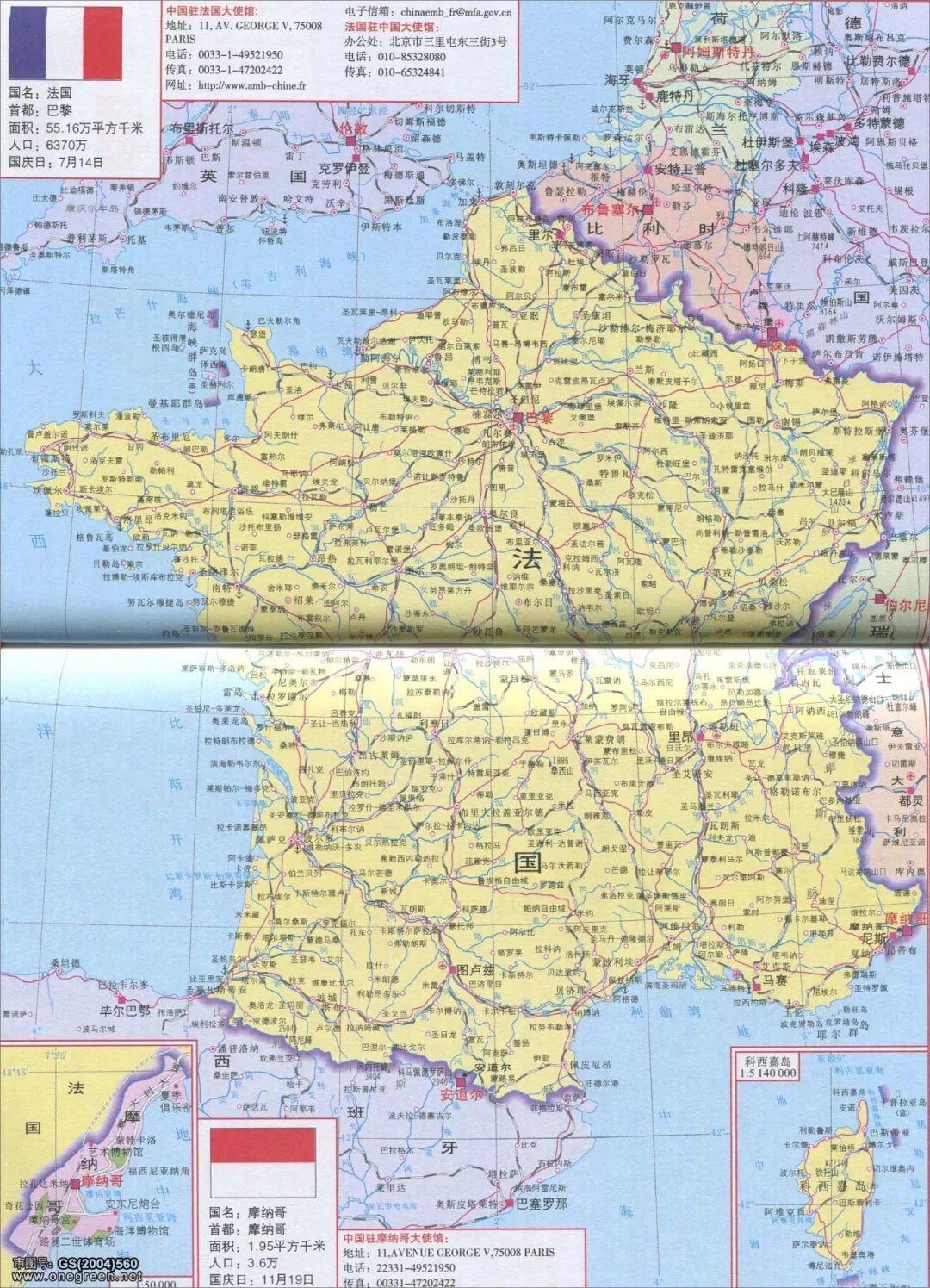 法国本土面积为543965平方公里,包括海外领土面积为632834平方公里。边境线总长度为5695公里,其中海岸线为2700公里,陆地线为2800公里,内河线为195公里。位于欧洲西部,与比利时、卢森堡、瑞士、德国、意大利、西班牙、安道尔、摩纳哥接壤,西北隔拉芒什海峡与英国相望,濒临北海、英吉利海峡、大西洋和地中海四大海域,地中海上的科西嘉岛是法国最大岛屿。