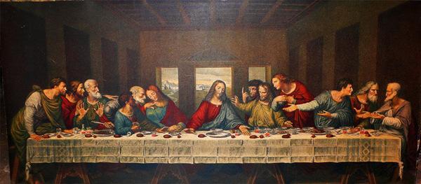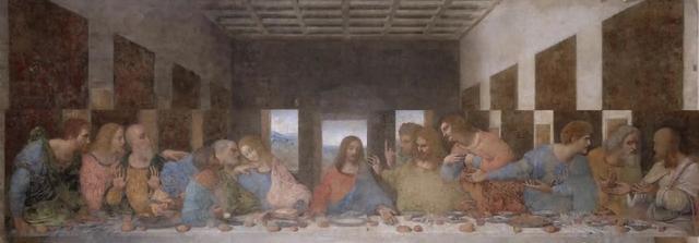 达芬奇的画《最后的晚餐》,画于意大利,米兰,格拉齐圣母修道院食堂的墙壁上,是一幅大型壁画,曾经很多人以为是画在纸上或者布上。