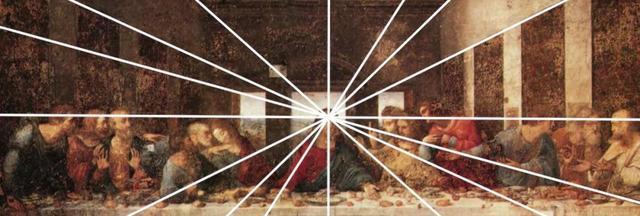在500年前,在一个很大的面积里面,用很精密的算法,而且位置如此准确,每一个对焦点都对准今天的主人物耶稣,可见达芬奇的绘画功底是有多么的深厚了。