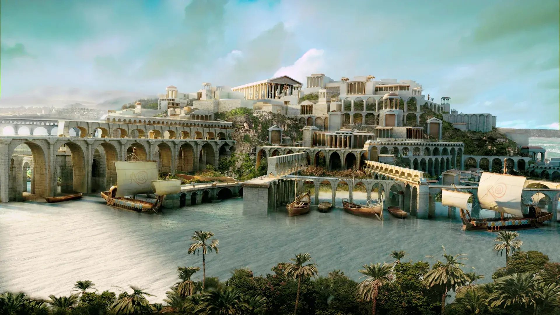 据柏拉图的描述,亚特兰蒂斯是由无数个同心圆组成的城市,中心有三个金字塔。每一层同心圆里的街道与建筑,都呈对角线深入大海。海港便竖立百米高的灯塔,装饰着三辆马车的雕塑。然而,尽管这些描述生动详细,但科学界一直未能找到确凿的证据来证明亚特兰蒂斯的存在。