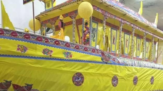 纸船上坐着一名男子。中国人经常为逝者焚烧纸扎祭品,希望他们在阴间能够过得好