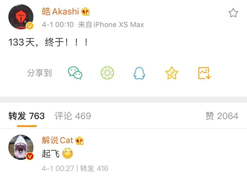 在4月1日凌晨,TES经理皓哥突然发文:133天,终于!而解说Cat也在下方评论:起飞!一开始,很多网友都不明白这是什么意思,直到阿水的出现,一切似乎变得合理了!