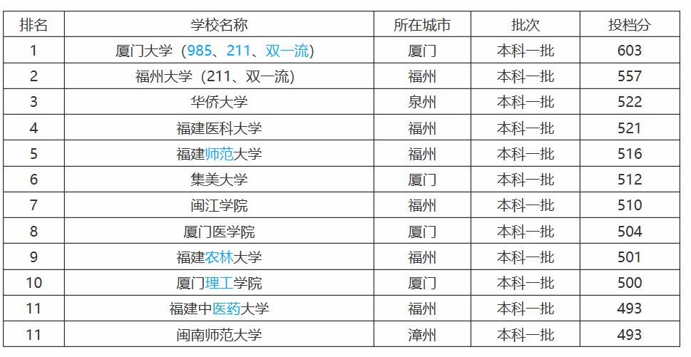 福建省大学档次排位,共八档!厦门大学第一名,华大紧随其后