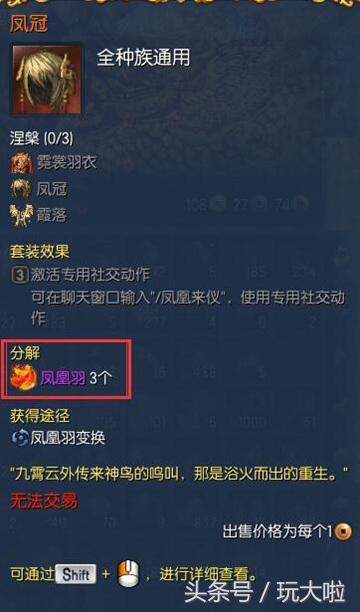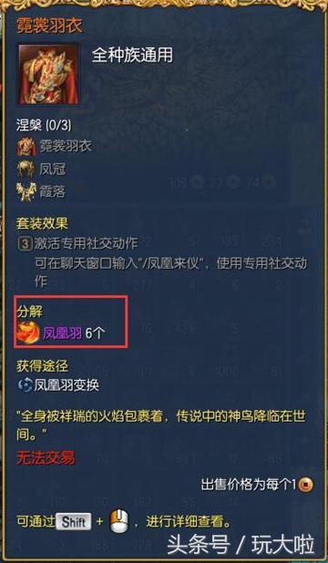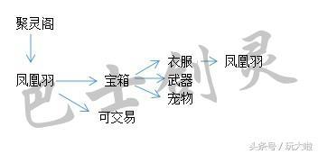 如上图所示,首先是在聚灵阁开得凤凰羽(凤凰羽可用来开宝箱也可用来交易),然后按照宝箱的获得公式如图1-1所示,可用凤凰羽获得宝箱,最后开启宝箱,可获得时装的各个部位、武器、宠物,如图1-2所示。在开取宝箱的过程中可能会有衣服部位开重复的情况,如果开重了就可以把衣服换成凤凰羽,具体见图1-3,最终衣服部位合齐后才会有相应的特效。