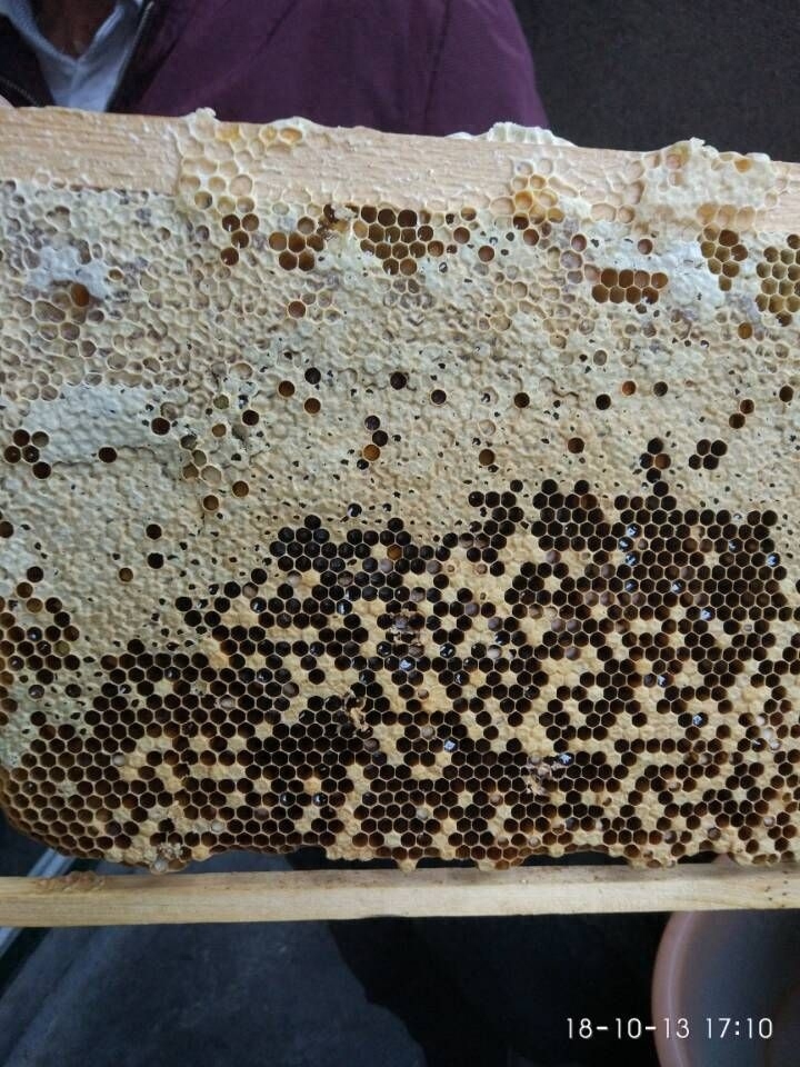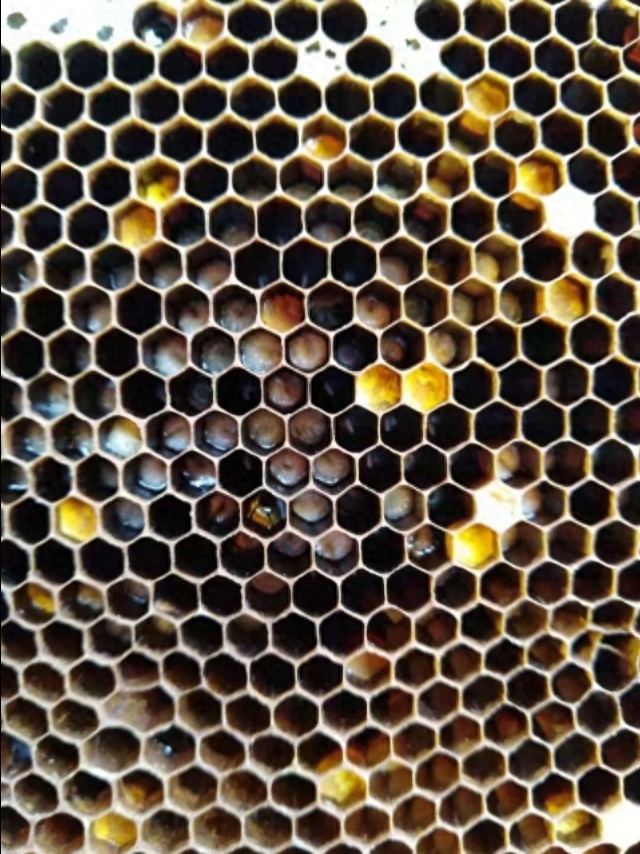 欧幼病:属于细菌病,有死尸,幼虫死亡发臭、烂虫,2-5天的幼虫会被蜜蜂清理出来。