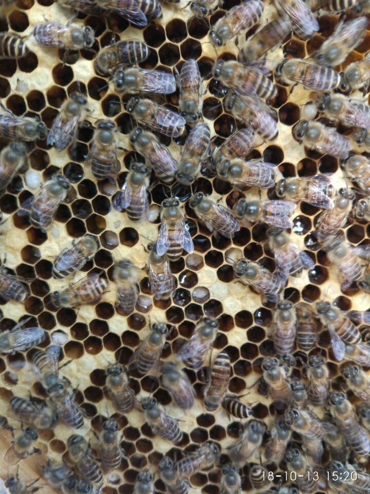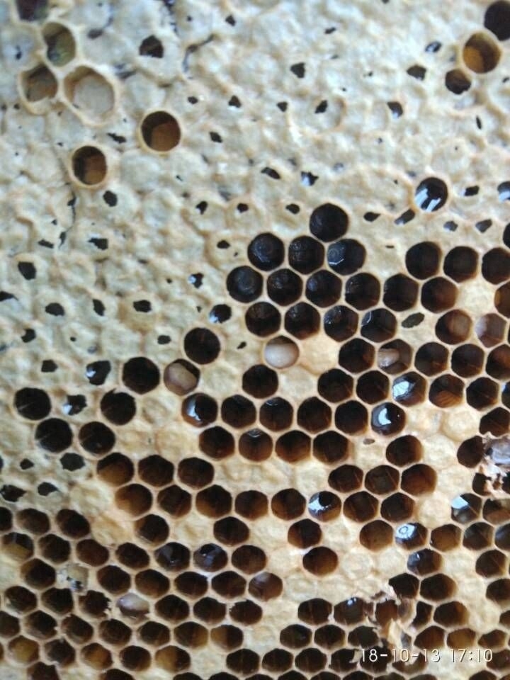 大幼不封盖病:属于恶性传染性病毒病,巢内大幼虫表面不像有病的虫,连续查几次蜂不见封盖子,也没发现有烂子,整张脾面上几乎找不到几个封盖的,就像发育定格了一样,成蜂不清理,但是蜂群下降厉害。仔细看:幼虫不封盖病的幼虫有变颜色,起初体色偏黄或淡黄色,小幼虫浆水也正常,最后发灰、发黑、发青,不死、不烂 ,不发臭,肿胀 ,感觉大虫还有反应,不像死亡,可以说90%的幼虫没有死亡,所以工蜂不拖出,用药2-3天后大部分能起死回生继续发育封盖。