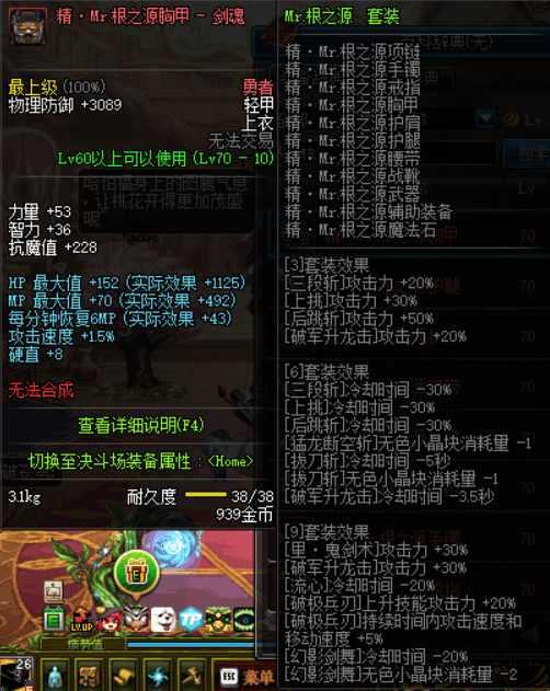 说完远古遗愿再说剑魂的另外的换装,即MR9九件套,属性和遗愿一模一样都是乘算,并且MR9带来的提升是和远古遗愿的提升乘算的。