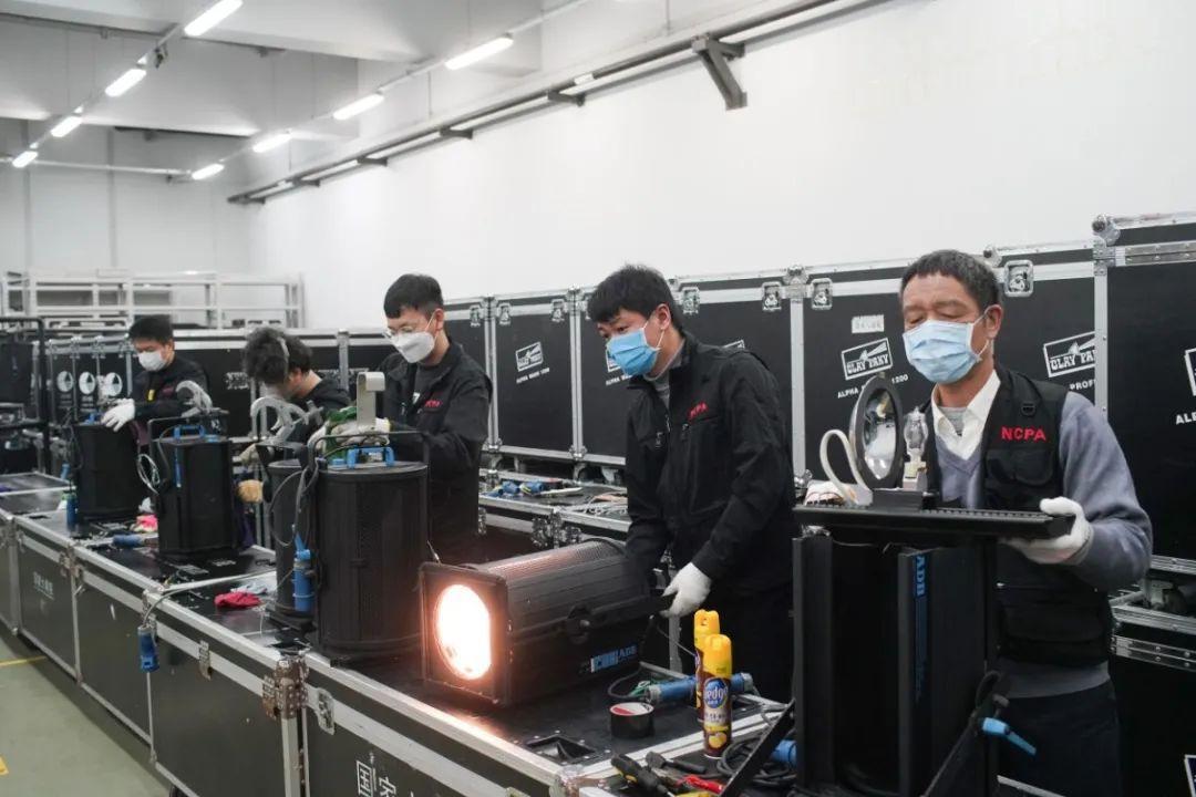 除了舞台上、观众席上方的常设灯光,剧院后台还有一间专门的库房,存放着PAR灯、AC灯、聚光灯、回光灯等3000多台灯具。一个月时间里,维保人员会对所有灯具一一进行检修和保养。