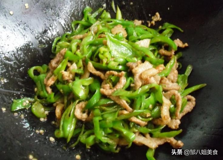 如果家里的火力不够足的话,可以先将肉丝盛出,把辣椒炒断生后再倒入肉丝合炒,这样不怕把肉丝炒老。