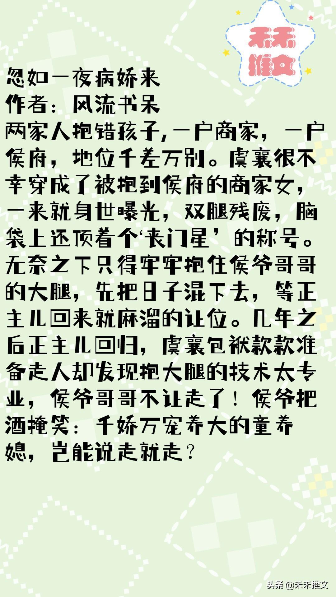 好了,今天禾禾就为小伙伴们推荐这几本好看的文章,关注禾禾!接下来禾禾会为大家继续推荐更多好看的文章。