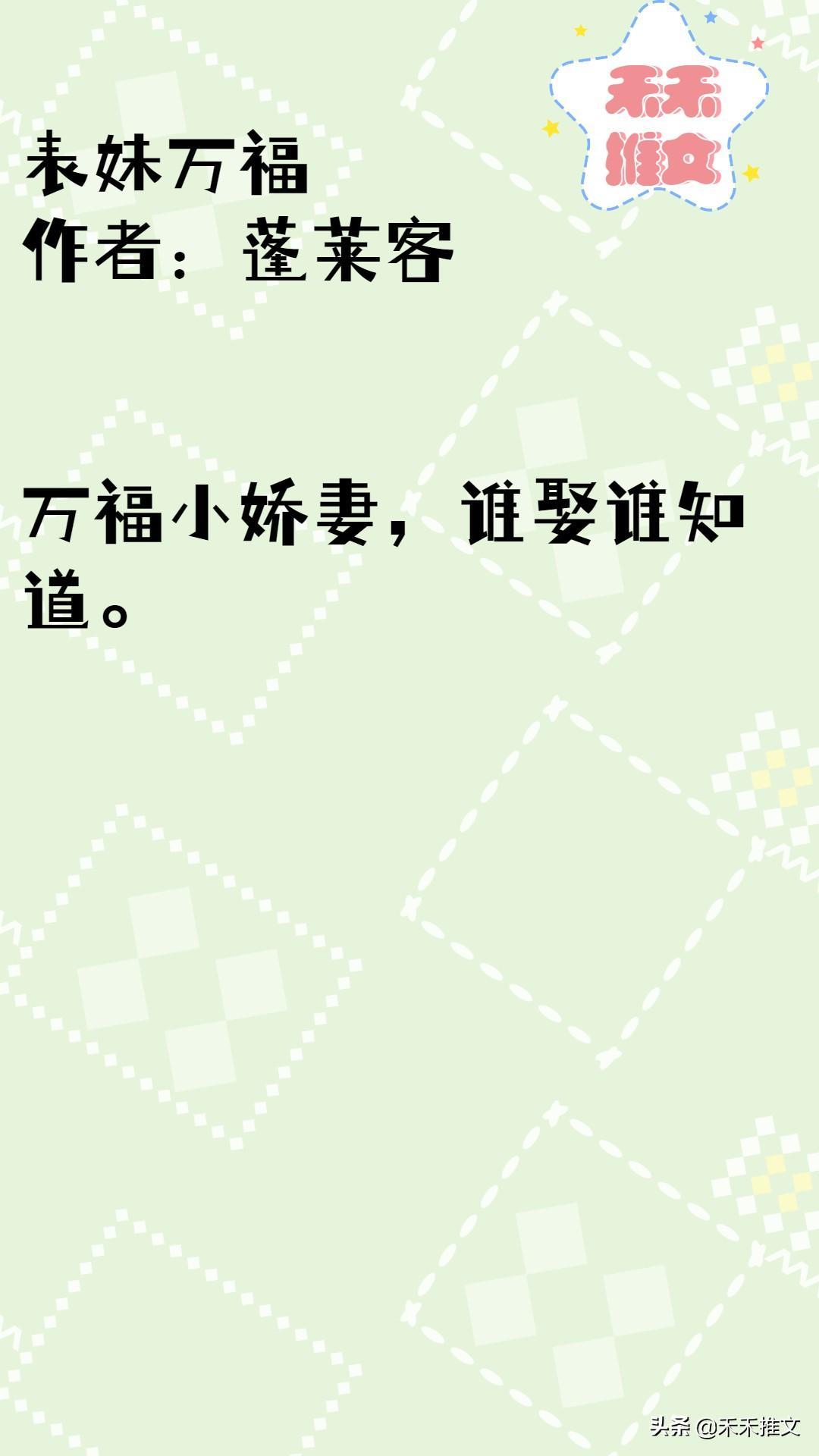 女主娇软可爱,男主十分正直,不近美色,蓬莱客的文笔十分不错,很值得一看。