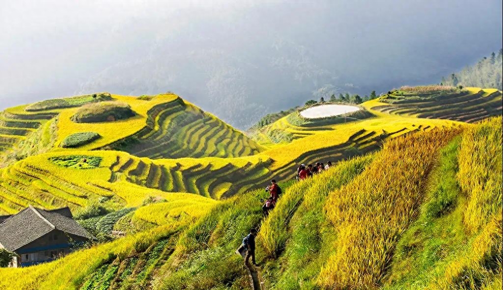 龙脊梯田,有时间就去龙脊梯田看看,梯田里稻谷成熟金灿灿的一片适合拍照打卡。