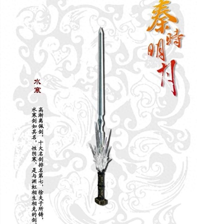 七、水寒,墨家首领高渐离的配剑,徐夫子所铸。剑如其名,性阴寒,与渊虹剑性相克,可惜没法看到两剑相碰的场景了。