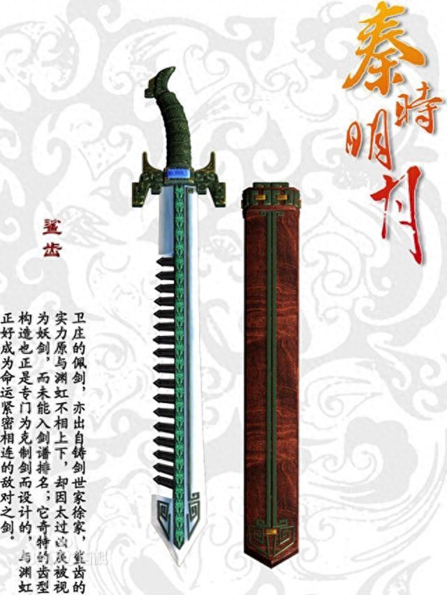 鲨齿,卫庄的配剑,人称之为妖剑,出自铸剑世家徐家,乃是名剑克星,只因过于凶戾而未能入剑谱排行。