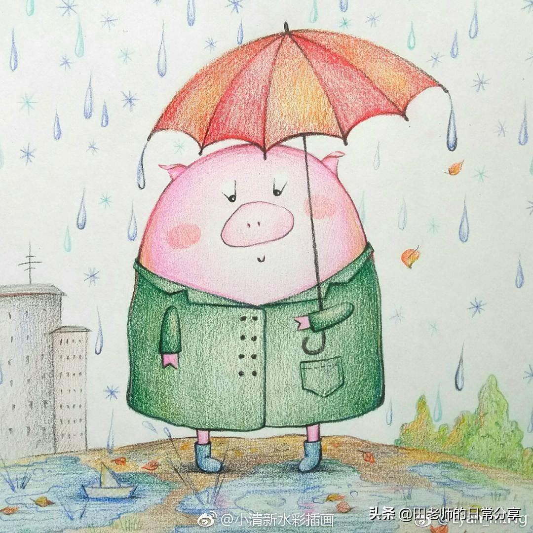 发现一组很可爱清新的彩铅卡通画,很适合新手练习