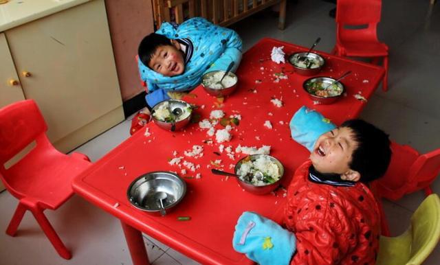 这张图片是孩子们在吃饭的场景,笑得合不拢嘴。桌子上乱七八糟的,看出他们吃相还是有待提高的哦。简单的饭菜,却满满的温馨!