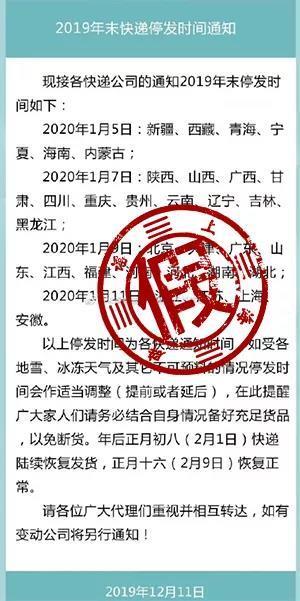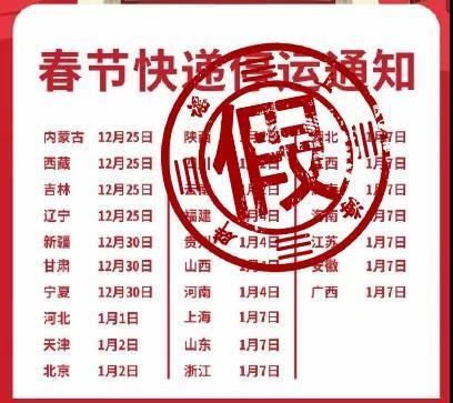 近日,一则有关“全国各地快递停发的日期定了”的传闻在微博微信等互联网平台广泛流传,据了解,这份流传着的大快递公司停运日期清单,时间多集中在1月5日、1月7日等,引发不少网友转发关注。
