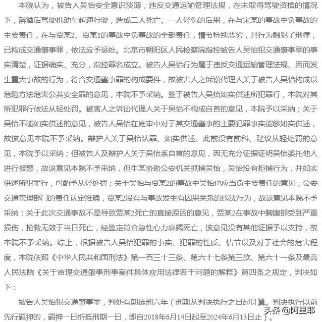 四平你怡姐吴怡因醉酒出车祸判刑6年