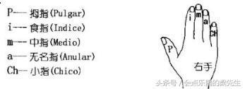 熟悉手指代号,从拇指开始到小指依次为p、i、m、a、ch。