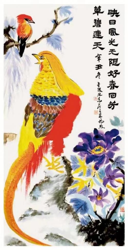 朱老师潜心深入研究大自然和传统笔艺,雕琢笔墨技能,对绘画语言的研究、深入和纯化,最终形成了自己独特的风格,使其作品呈现一种逸怀浩气、生动灵敏的情绪。她所做的花鸟画,灵动含蓄、苍润浑厚、气象郁勃,表象轻灵,且富于神韵。笔墨之间,法度自由,理性与直觉融合,被流动的生命气息所贯通,意象因而生机勃勃,充溢着乾坤清气。老师的作品大气、干净,直指笔墨。出于一位画家对世间万物感知的敏感度,她总是自然而然地把对花鸟形色的感受转化成笔墨形态。画面的结构繁复而有序,笔法奔入而有节,所绘之物栩栩如生,跃然纸上,创造了充满激情和浪漫感性的意境,以既是印象感知的又是心灵表现的绘画意境追求,运用传统的意境笔墨语言创造一种新画面,打开一个新思路。老师的书画创作在继承传统基础上大胆尝试,用笔灵活,古朴拙雅,笔墨与色彩既和谐又富于创新。