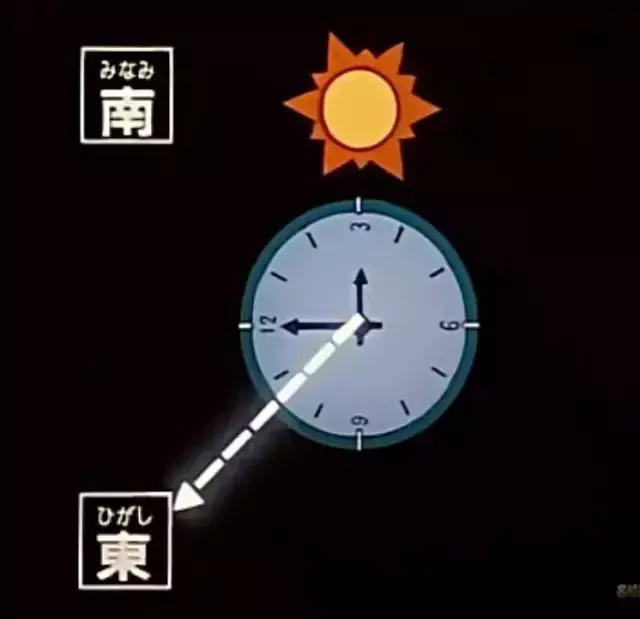 把短针指向太阳的时候,短针和十二点之间二分之一的方向就是南方,所谓的东方就是在他左边的九十度角。