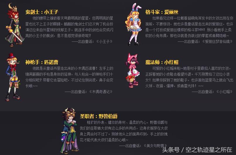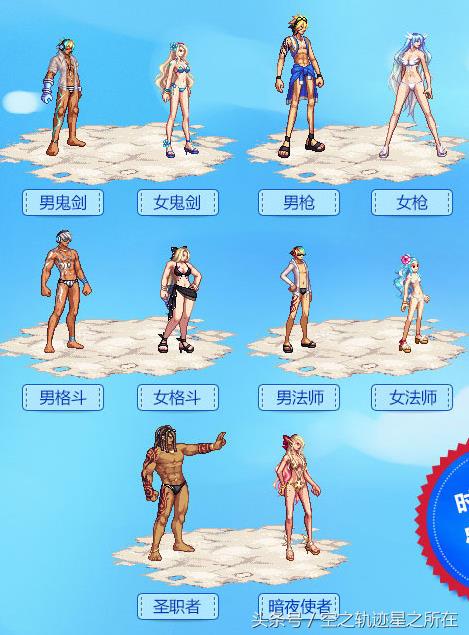 职业:鬼剑士,格斗家,神枪手,魔法师,圣职者,暗夜使者