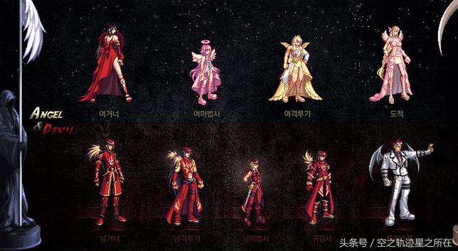职业:鬼剑士(男,女),格斗家(男,女),神枪手(男,女),魔法师(男,女),圣职者,暗夜使者,守护者,魔枪士