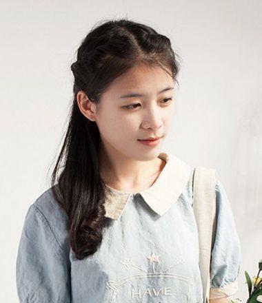 扎成公主头的发型并不会影响到特意做出来的中长发发尾的卷曲效果,中分之后的头发沿着两边的发际线,平行的向后扭转做造型,拢起来的头发像是给头发做了分区。