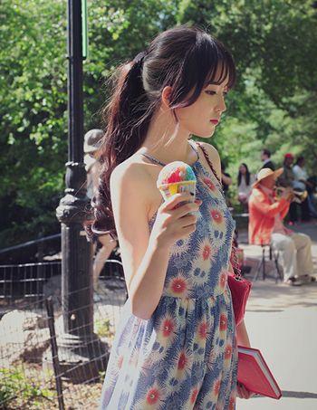 侧分的长卷发简单的在脑后整理成公主风的半扎发,就很有轻熟女的感觉了呢,亚麻色的长卷烫发不仅是俏丽出众的,同时也很是衬托学生女个人的气质感呢,搭配上碎发的连衣裙后,很棒吧!