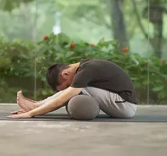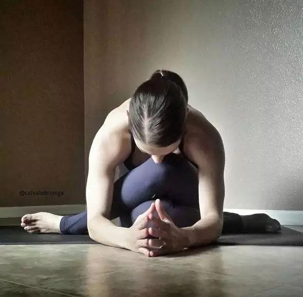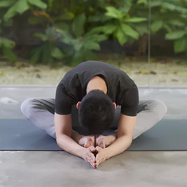 坐下,双腿伸直,双脚分开与髋同宽。当你向前屈时,让膝盖稍微弯曲(或支撑在长枕上),使你的前下肋骨尽可能靠近你的大腿。放松双臂,保持头部和颈部与脊椎成一直线。