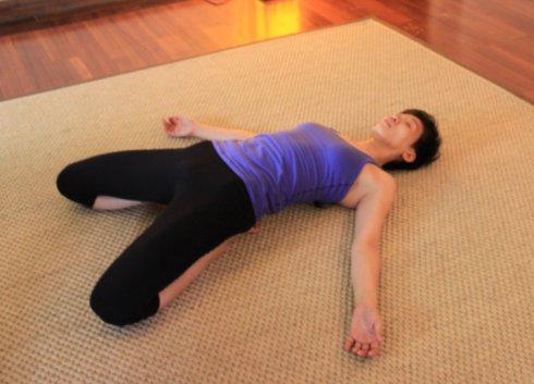 通过将膝盖抱在胸前完成序列,然后转向一侧,然后回到坐姿。